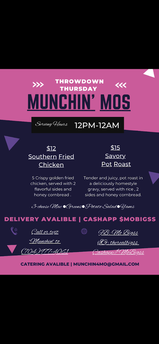 When you step into Munchin' Mo's, you're not just enjoying a meal, you're diving into a flavorful experience. Located at 2200 Beatties Ford Rd, Charlotte, NC, this spot is known for its mouthwatering menu that's packed with comfort food and bold flavors. Whether you're craving a hearty sandwich, crispy fries, or something special from their signature dishes, Munchin' Mo's Menu has something to satisfy every taste. The kitchen is all about fresh ingredients, giving you that perfect balance of deliciousness and quality in every bite. Every dish is crafted with care, ensuring that no matter what you pick, you're in for a treat. The laid-back vibe and tasty options make it a go-to for a casual lunch or dinner.